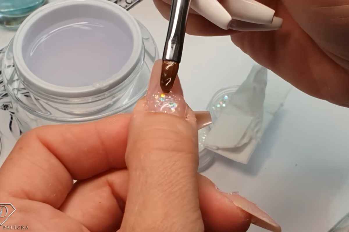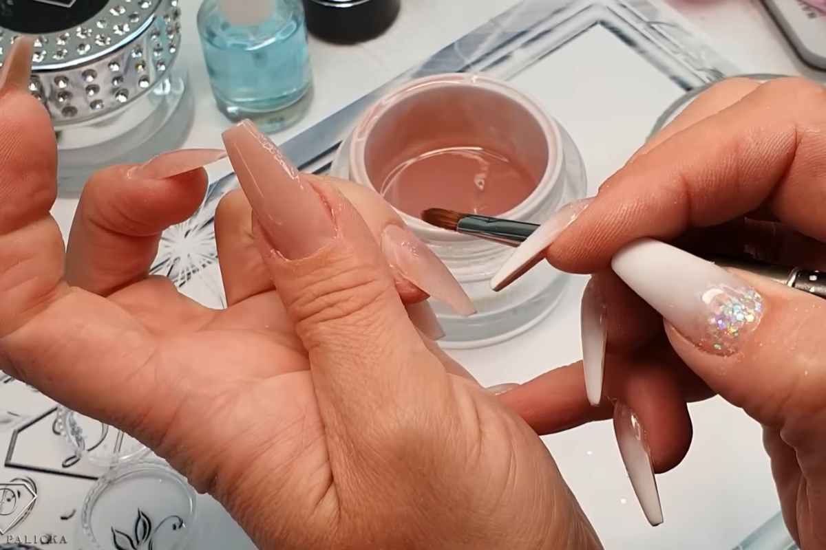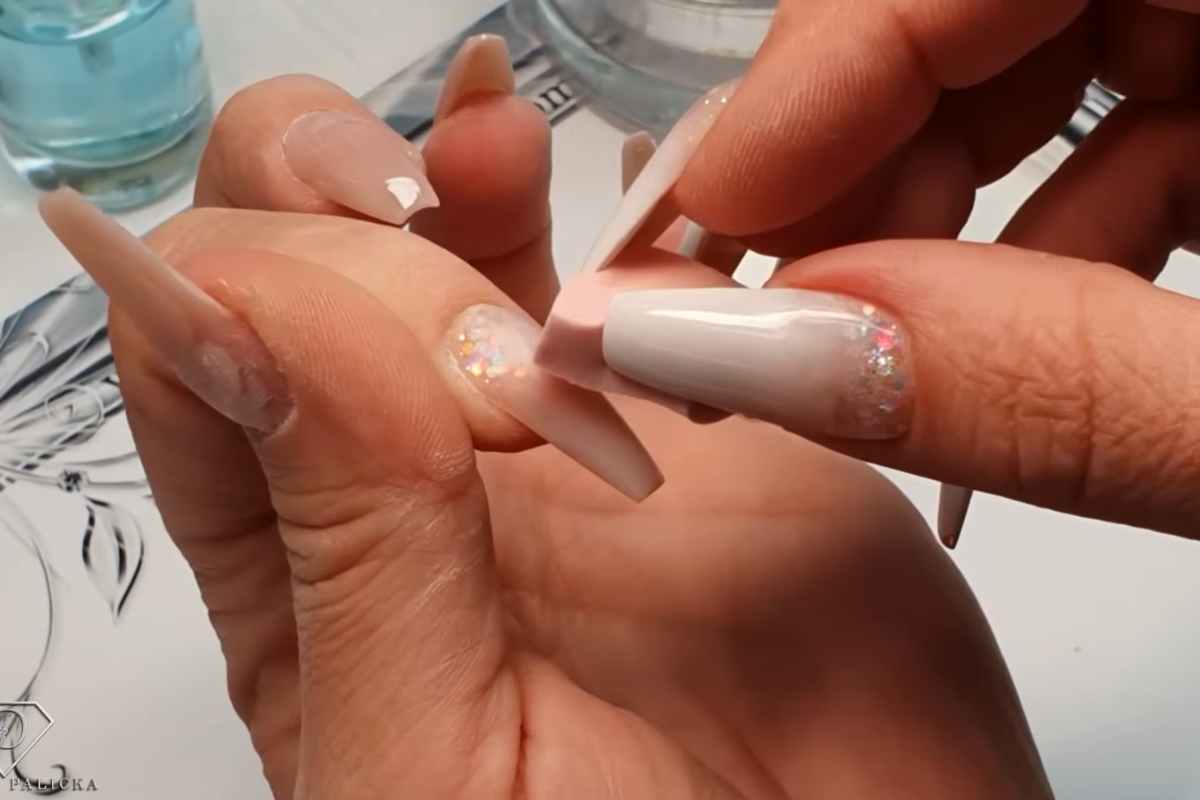 Ensuring regular rebalancing appointments with a skilled nail technician will keep the Babyboomer gradient and glitter encapsulation looking fresh and well-maintained.