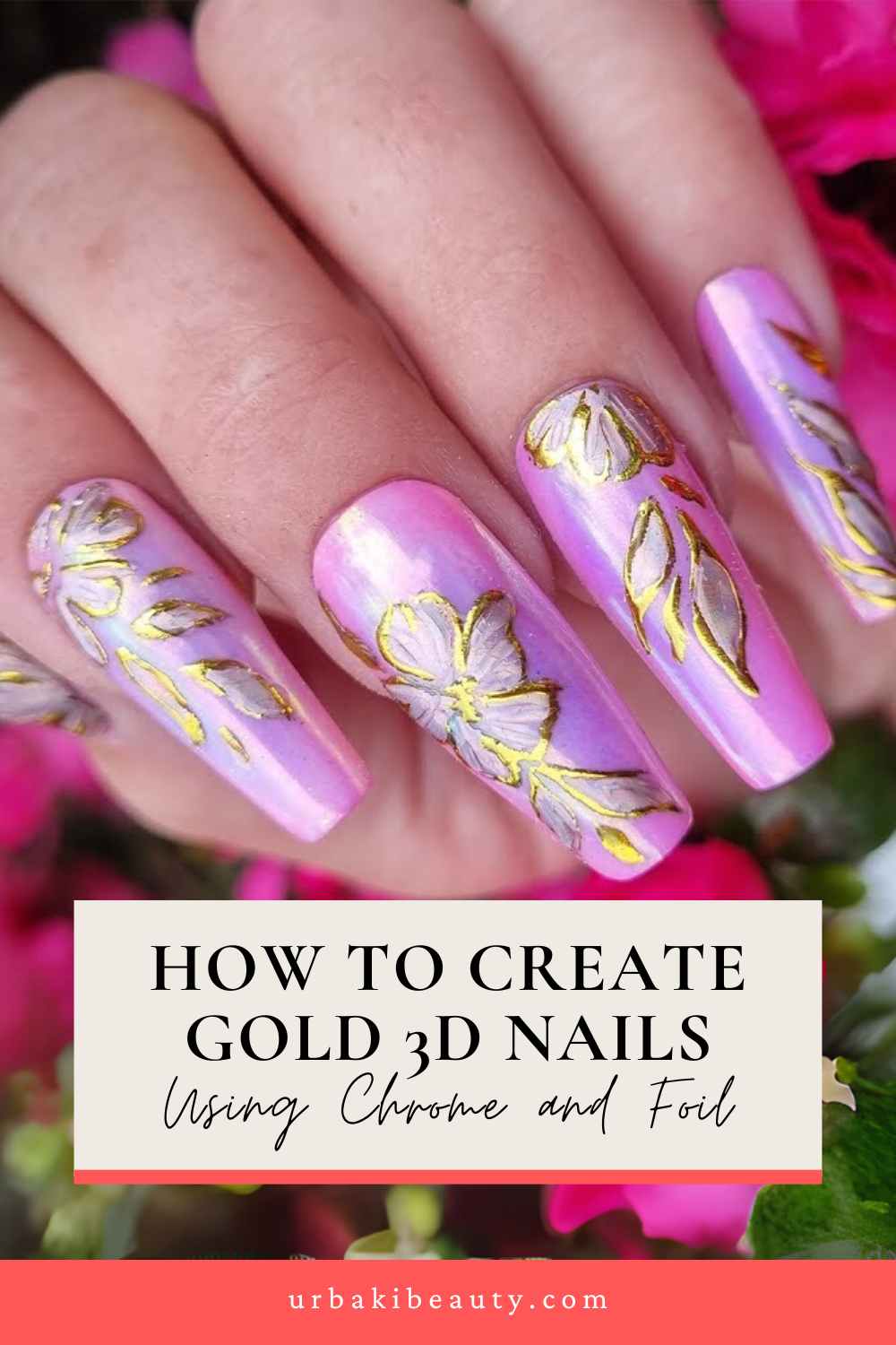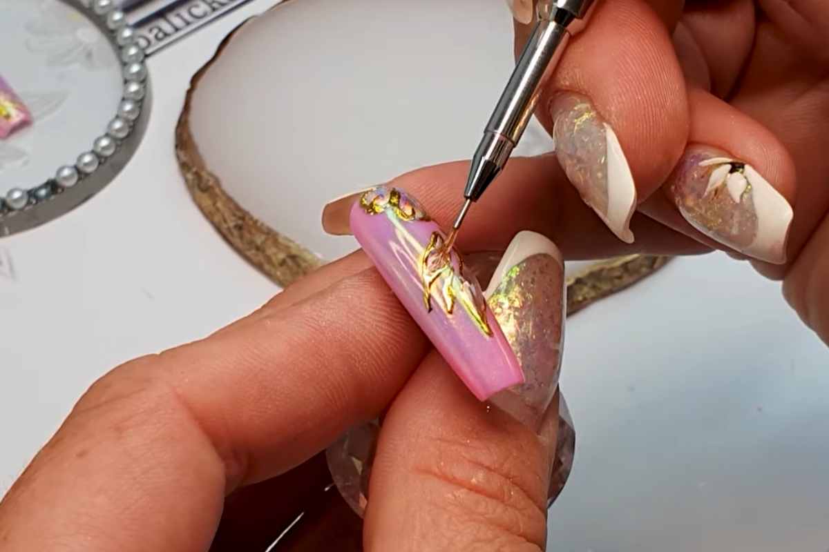 How to Create Gold 3D Nails Using Chrome and Foil